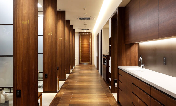 横浜市緑区で施工した矯正歯科クリニックの設計施工事例です。アジアのリゾートホテルのような雰囲気の中で、来院される患者様にリラックスして過ごしていただける空間を目指し、木や自然素材を随所に取り入れたクリニックづくりを行いました。