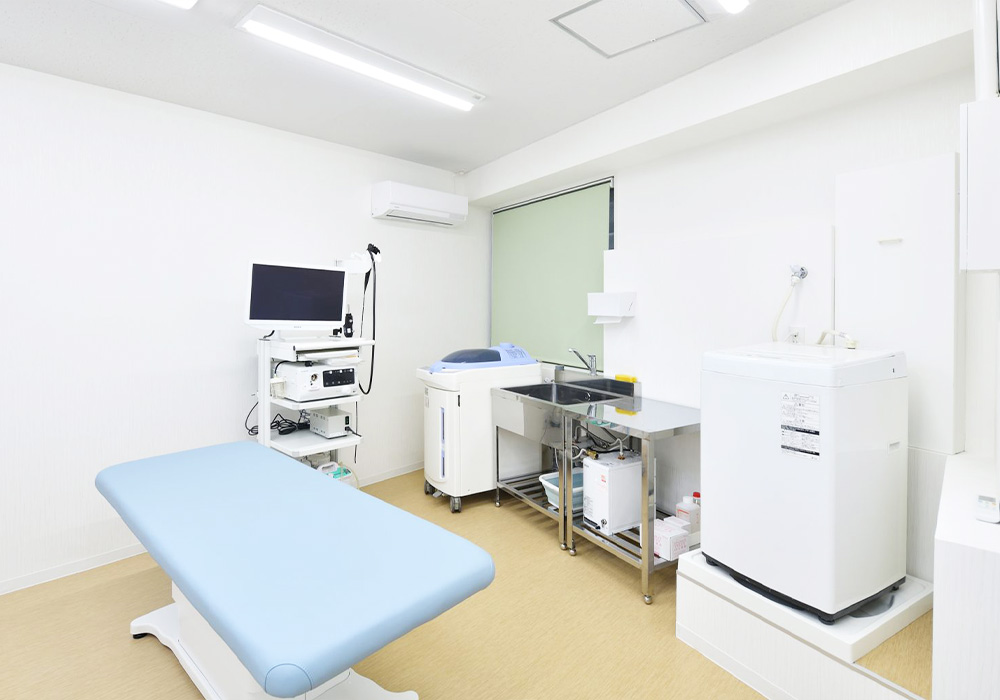 隣接テナントを取り込んで面積を拡張したことで、スタッフルーム、院長室、倉庫といったバックヤードに加え、内視鏡検査室、レントゲン室、エコー室、リカバリー室なども、ゆとりを持って配置できるようになりました。機能ごとの区画を整理し直すことで、日々の診療や院内動線にも配慮した構成となっています。