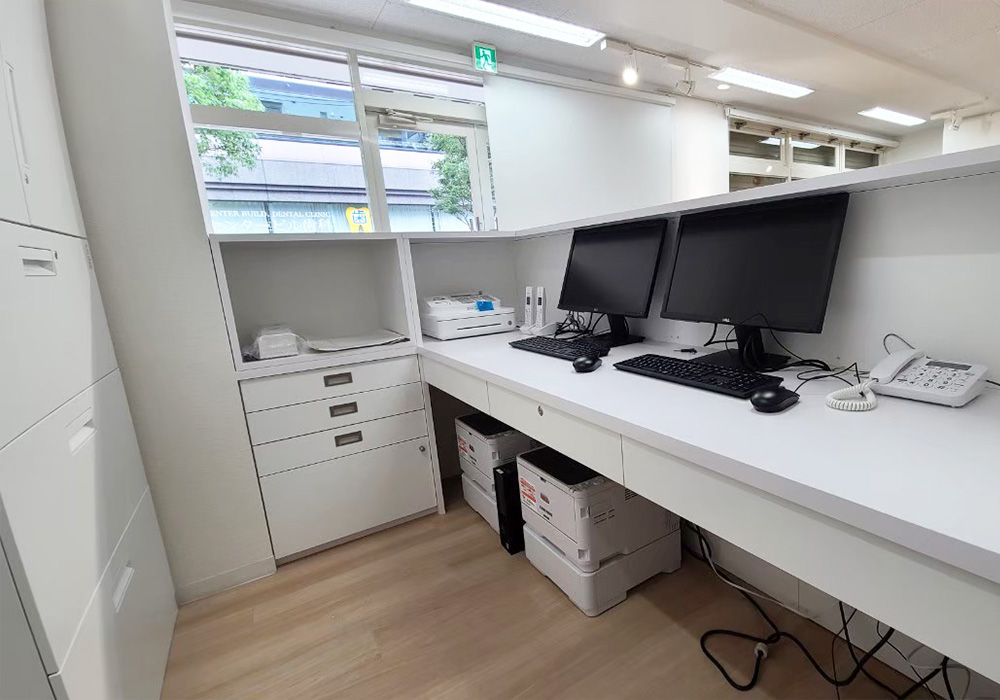 受付カウンターはオーダーメードで製作し、機能性だけでなくデザイン性も感じられる空間づくりを行っています。
